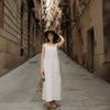 Langes Kleid aus Leinen in Weiß mit Graue Streifen - The Baltic Shop