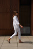 Die weißen Jeans orientieren sich an Jackie Onassis' zeitlosem Urlaubsstil während ihrer ruhigen Kurzurlaube auf der Insel Skorpios und fangen den mühelosen Charme der 1960er und 1970er Jahre ein. Diese zeitlosen Essentials kombinieren mühelos Schlichtheit, Eleganz und Komfort