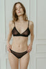 Wunderschöner schwarzer BH, ohne Bügel, aus weichem Mesh mit schwarzen samtigen Punkten wie ein sternenklares Paris um Mitternacht. Das Bralette ist sehr bequem und schön, sowohl für Freizeitkleidung als auch für ganz besondere Anlässe. Das Bralette ist mit Naht und feinen, verstellbaren Trägern, Trägerbreite 0,7 cm, Bundweite 3 cm.