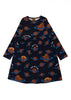 Herbst-/Winterkollektion „To the Moon & Back“ Kleid mit Allover-Planetendruck. Dieses Produkt besteht aus Baumwolle eines vertrauenswürdigen europäischen Lieferanten. Die Stoffe sind weich, aber strapazierfähig und frei von schädlichen Chemikalien.