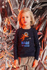Herbst-/Winterkollektion „To the Moon & Back“, Oberteil in Marineblau mit Aufdruck „Dare To Dream“. Dieses Produkt besteht aus Baumwolle eines vertrauenswürdigen europäischen Lieferanten. Die Stoffe sind weich, aber strapazierfähig und frei von schädlichen Chemikalien.
