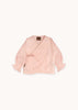 Dank des praktischen Wickelschnitts mit seitlichen Bindebändern lässt sich die Jacke leicht an- und ausziehen, ohne über den Kopf gezogen werden zu müssen – ideal für Neugeborene. Die zarten Rüschen an den Ärmelabschlüssen verleihen der Jacke eine verspielte und elegante Note und machen sie zu einem besonderen Hingucker.
