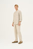 Der moderne Stehkragen (Mandarin-Kragen) verleiht dem Hemd eine elegante, reduzierte Optik. Eine aufgesetzte Brusttasche und die durchgehende Knopfleiste unterstreichen den klassischen Charakter, während die natürliche Struktur des Leinens für eine hochwertige, authentische Ausstrahlung sorgt.