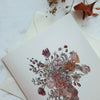 Die Karte ist innen leer und sie hat das Logo der Marke mit einer kleinen Blume auf der anderen Seite. Ein brauner Bastelumschlag ist beigefügt und im Preis enthalten.