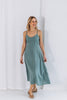 Die schmalen Träger und das raffinierte Rückendetail mit zarter Bindung verleihen dem Kleid eine besondere, sommerliche Note. Der weich fallende Rock in Midilänge umspielt die Silhouette und sorgt für eine feminine, entspannte Ausstrahlung. Der leicht geraffte Taillenbereich bietet angenehme Bewegungsfreiheit und eine schmeichelnde Passform.